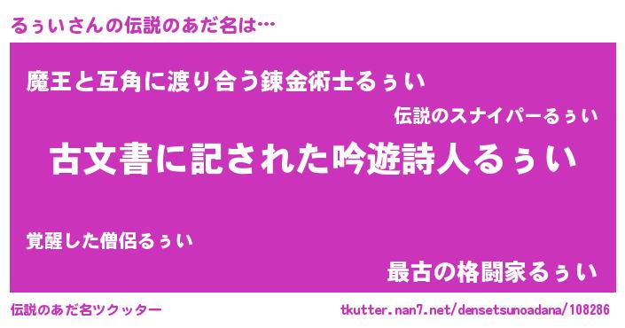 | 男性向けラノベタイトル風あだ名 | 『この素晴らしい世界にるぅいを!』 |