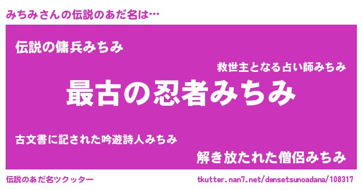 | 意味不明あだ名 | 『みちみフォーエバー』『ペロリンみちみ』 |