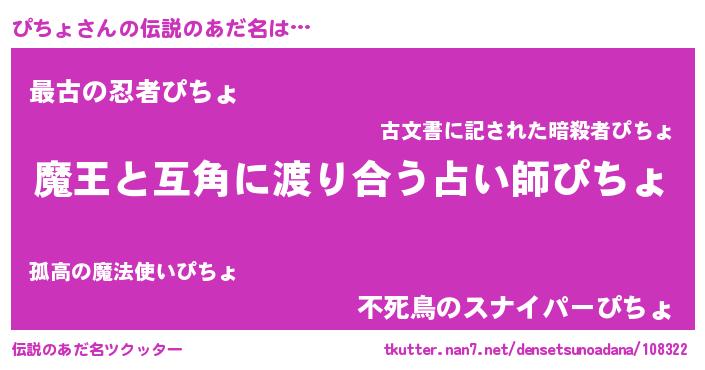 | 意味不明あだ名 | 『眠気覚ましガムぴちょ味』『自称ぴちょ』 |