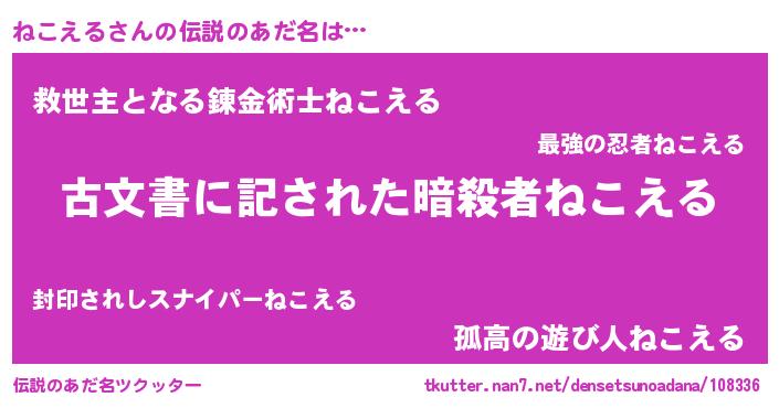 ヒーロー風カッコイイあだ名 | 『ネオネコエル』『慈愛の使者ねこえる』 |