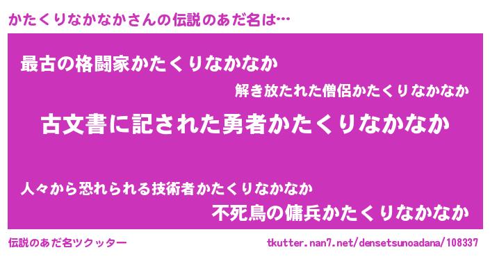 | 男性向けラノベタイトル風あだ名 | 『この素晴らしい世界にかたくりなかなかを!』 |