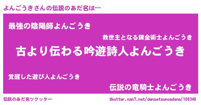 | ヒーロー風カッコイイあだ名 | 『ネオヨンゴウキ』『スーパーヨンゴウキ』 |