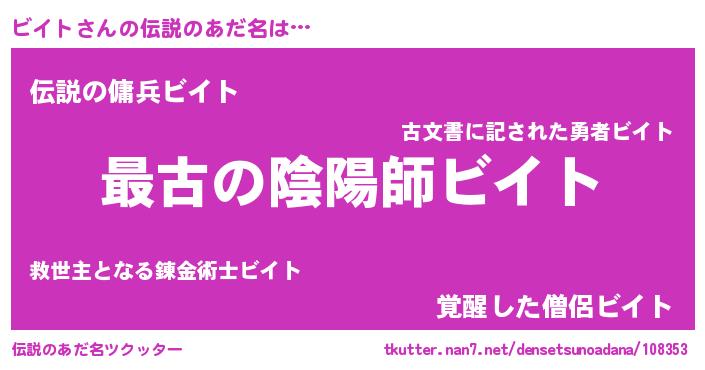 | ヒーロー風カッコイイあだ名 | 『仮面ビイダー』『最強戦士ビイト』 |