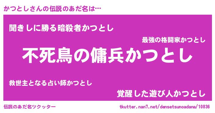 | 男性向けラノベタイトル風あだ名 | 『かつとしの憂鬱』『魔弾の王とかつとし』 |