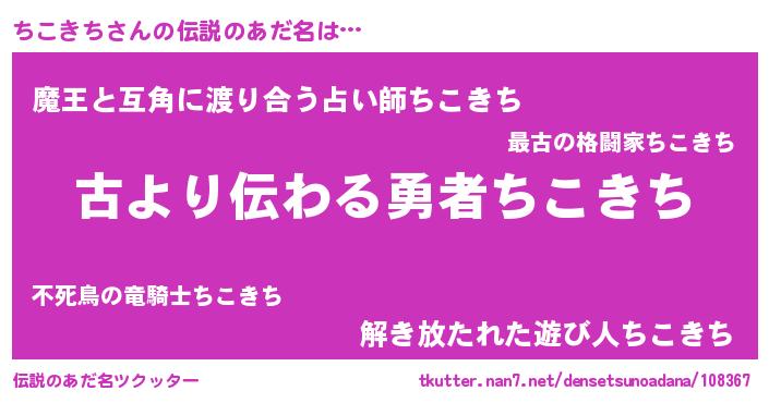 | ヒーロー風カッコイイあだ名 | 『ネオチコキチ』『正義の使者ちこきち』 |