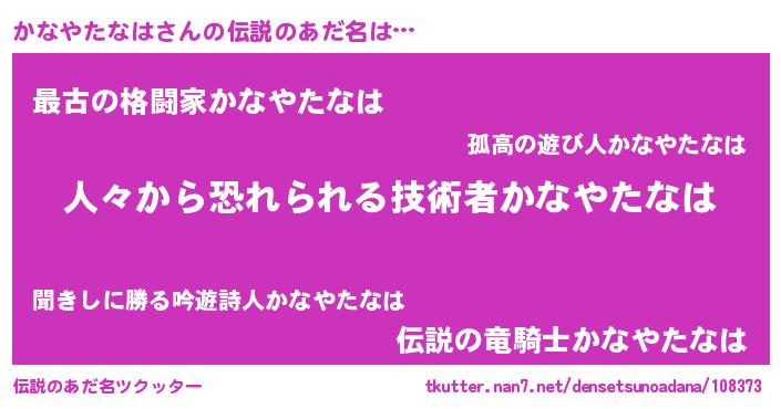 | ヒーロー風カッコイイあだ名 | 『正義の使者かなやたなは』 |