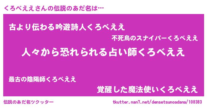 | 男性向けラノベタイトル風あだ名 | 『おまえをオタクにしてやるから、俺をくろべええにしてくれ! 』 |