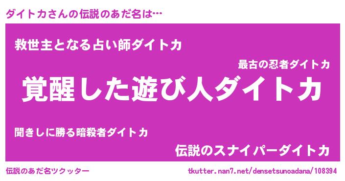 | 意味不明あだ名 | 『住所不定無職ダイトカ(91歳)』 |