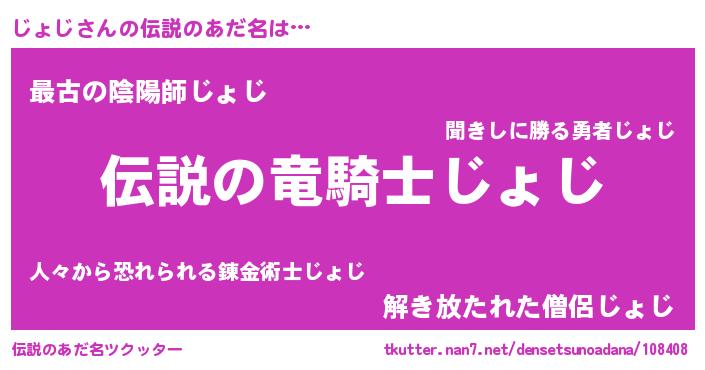 | 胡散臭い通販商品みたいなあだ名 | 『必ず成功するブレスレット…その名も「じょじ」』 |