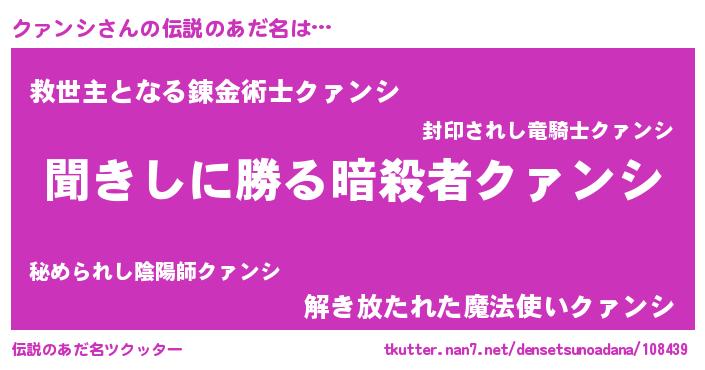 | 女子向けラノベタイトル風あだ名 | 『異世界で失敗しない100のクァンシ』 |