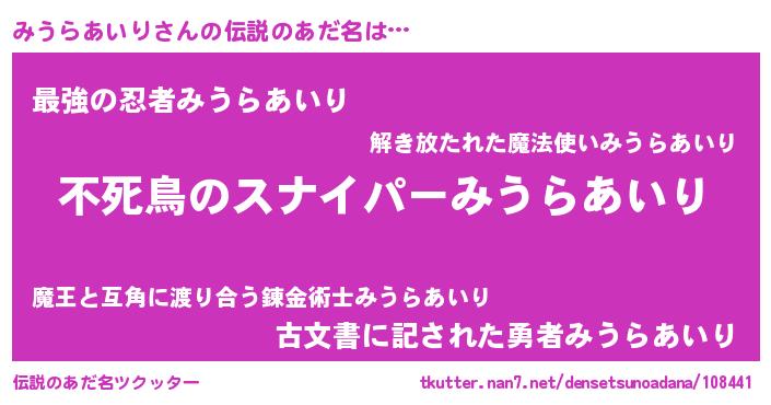 | 男性向けラノベタイトル風あだ名 | 『ミウラアイリアートオンライン』 |