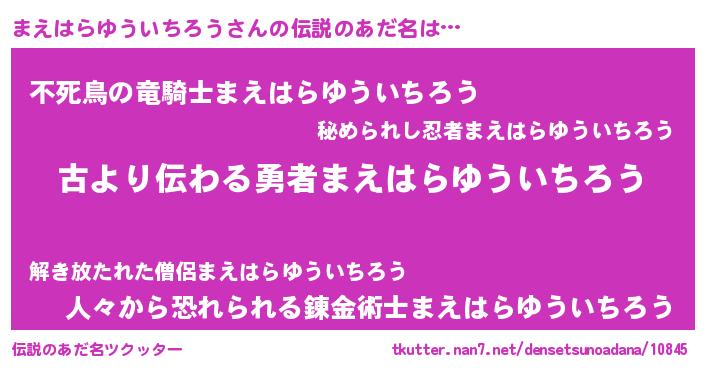 | 女子向けラノベタイトル風あだ名 | 『まえはらゆういちろうの玉の輿計画!』 |