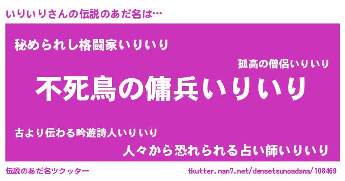 | ヒーロー風カッコイイあだ名 | 『スーパーイリイリ』『愛の使者いりいり』 |