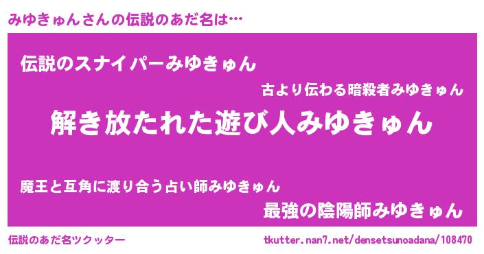 | ヒーロー風カッコイイあだ名 | 『サイバー戦士ミユキュン』 |