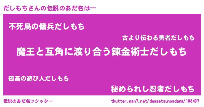 | ヒーロー風カッコイイあだ名 | 『慈愛の使者だしもち』『ネオダシモチ』 |