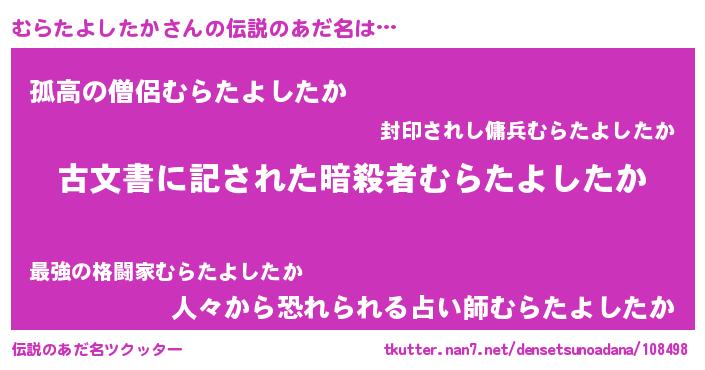 | 意味不明あだ名 | 『自称むらたよしたか』 |