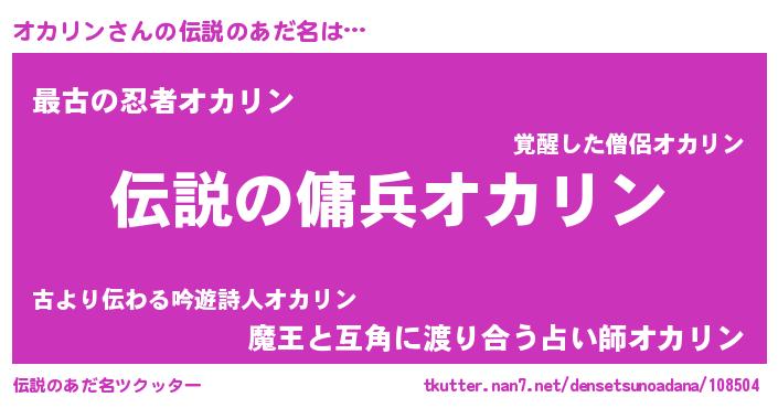 | ヒーロー風カッコイイあだ名 | 『スーパーオカリン』『愛の使者オカリン』 |