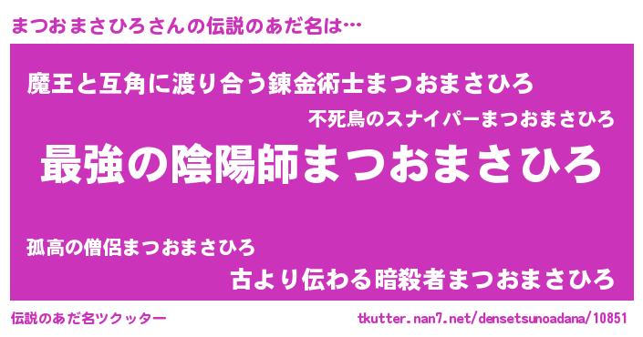 | ヒーロー風カッコイイあだ名 | 『仮面マツダー』『ネオマツオマサヒロ』 |