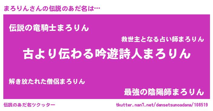 | ヘコむあだ名 | 『まろりん(小並感)』『まろふぇ~』 |