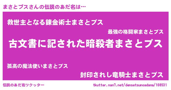 | ヒーロー風カッコイイあだ名 | 『仮面マサダー』『最強戦士マサトブス』 |