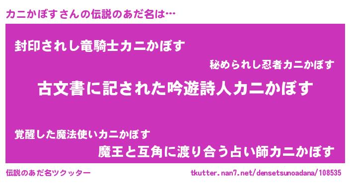 | 意味不明あだ名 | 『自称カニかぼす』『永久保存カニかぼす』 |