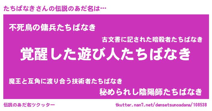 | 男性向けラノベタイトル風あだ名 | 『この素晴らしい世界にたちばなきを!』 |