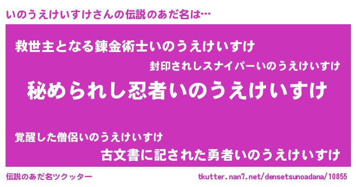 | 意味不明あだ名 | 『自称いのうえけいすけ』 |