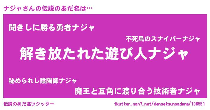 | 意味不明あだ名 | 『とにかく怪しいナジャ』『自称ナジャ』 |