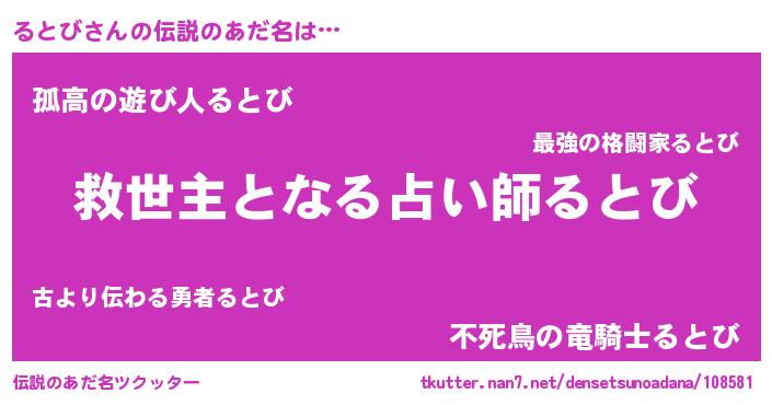 | ヒーロー風カッコイイあだ名 | 『慈愛の使者るとび』『暗黒騎士ルト』 |