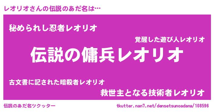 | ファンタジー風あだ名 | 『レオフェル』『エターナルレオリオー』 |