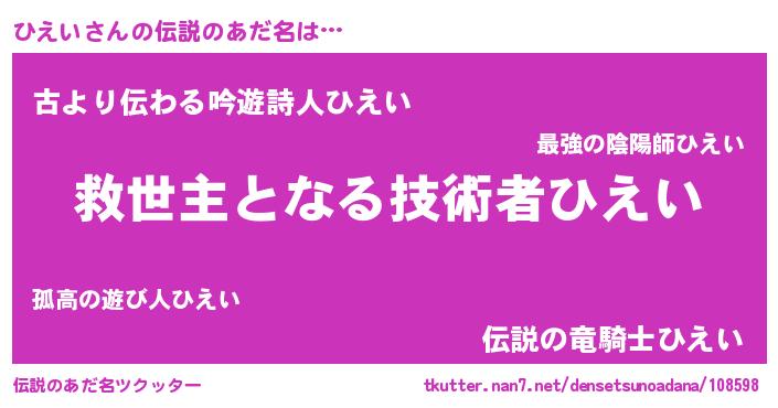 | 意味不明あだ名 | 『住所不定無職ひえい(7歳)』 |