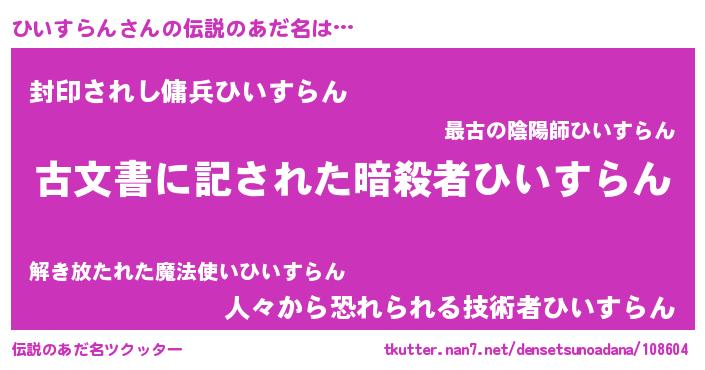 | 意味不明あだ名 | 『永久保存ひいすらん』 |