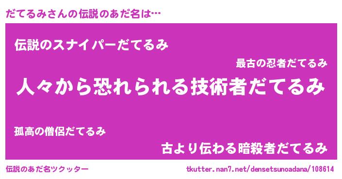 | 胡散臭い通販商品みたいなあだ名 | 『100人中100人が認めたマグネット磁石…その名も「だてるみ」』 |