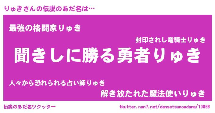 | 男性向けラノベタイトル風あだ名 | 『りゅきという概念が存在しない退屈な世界 』 |