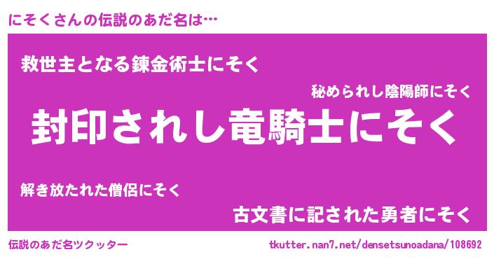 | ヒーロー風カッコイイあだ名 | 『究極戦士ニソク』『スーパーニソク』 |