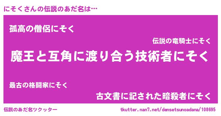 | ヒーロー風カッコイイあだ名 | 『愛の使者にそく』『黄金騎士ニソ』 |