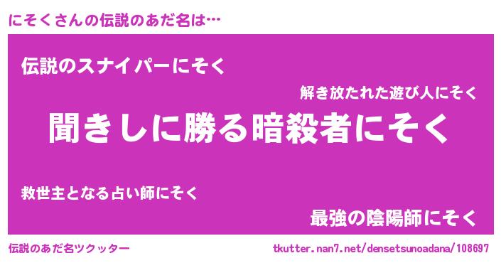 | 意味不明あだ名 | 『永久保存にそく』『自称にそく』 |