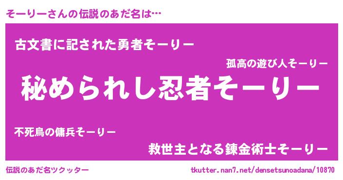 | 女子向けラノベタイトル風あだ名 | 『そーりーの雑貨屋さん』 |