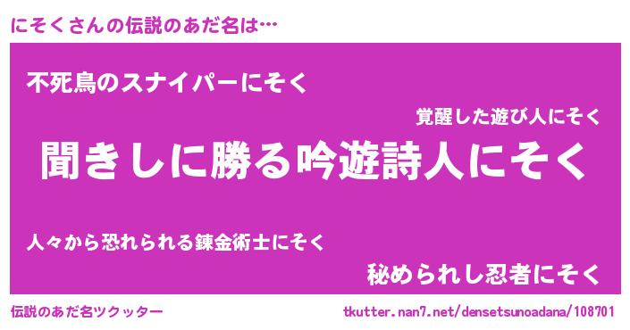 | 男性向けラノベタイトル風あだ名 | 『ニソクスレイヤー』 |