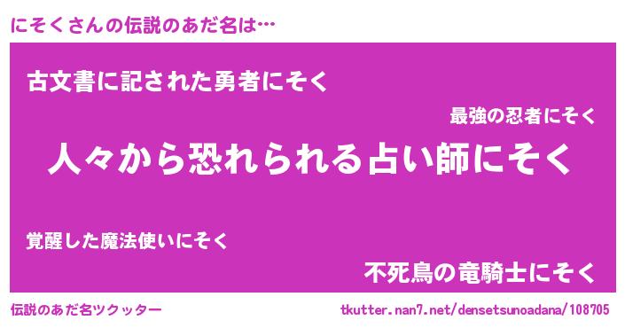| ポケモン風あだ名 | 『ニックウザ』『ゼニニソ』 |
