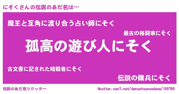 | ポケモン風あだ名 | 『ヒニソク』『ニーソイ』『ニソゴンZ』 |