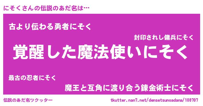 | ヒーロー風カッコイイあだ名 | 『仮面ニソダー』『銀牙騎士ニソ』 |