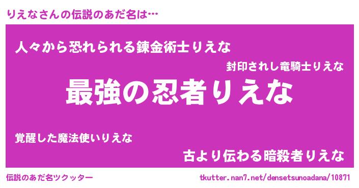 | ヒーロー風カッコイイあだ名 | 『仮面リエダー』『ウルトラりえなマン』 |