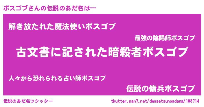 | ヒーロー風カッコイイあだ名 | 『ネオボスゴブ』『暗黒騎士ボス』 |