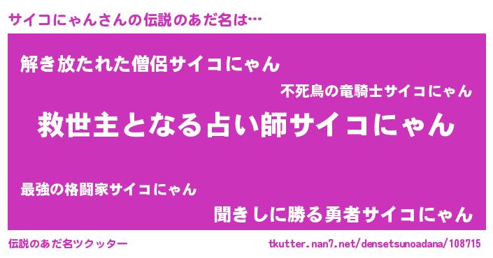 | ヒーロー風カッコイイあだ名 | 『慈愛の使者サイコにゃん』 |