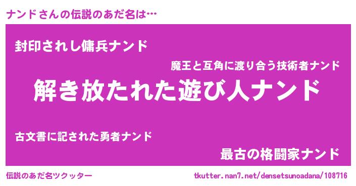 | ヒーロー風カッコイイあだ名 | 『幻影騎士ナン』『スーパーナンド』 |