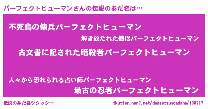 | ヒーロー風カッコイイあだ名 | 『究極戦士パーフェクトヒューマン』 |