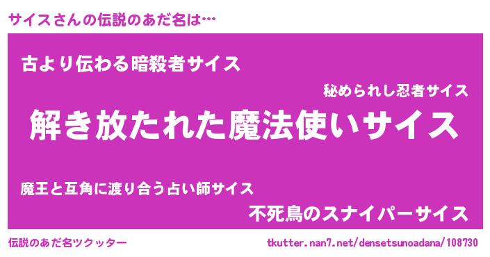 | ヒーロー風カッコイイあだ名 | 『幻影騎士サイ』『ネオサイス』 |
