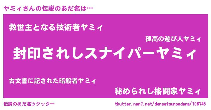 | ヒーロー風カッコイイあだ名 | 『究極戦士ヤミィ』『スーパーヤミィ』 |