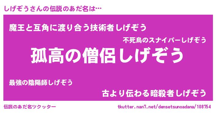 | ヘコむあだ名 | 『しげっぺ』『しげぞう(小並感)』 |